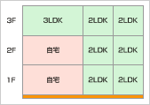 採光、通風、眺望を重視して、自宅部を上階に配するタイプ。アプローチを分離することもできますし、また共用エントランスを設けて高級マンションの風格を演出することもできます。