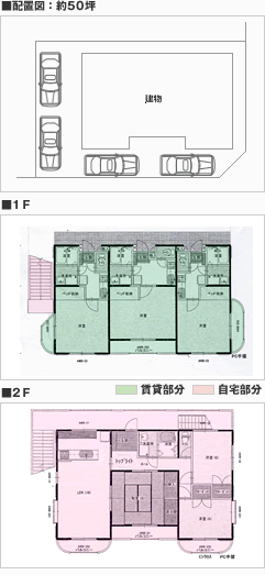 1階が自宅なので、オーナーは庭のある暮らしを楽しめます。また、階段の上り下りが少なく、ご高齢の方や高齢化に備えたい方に適した住み方です。